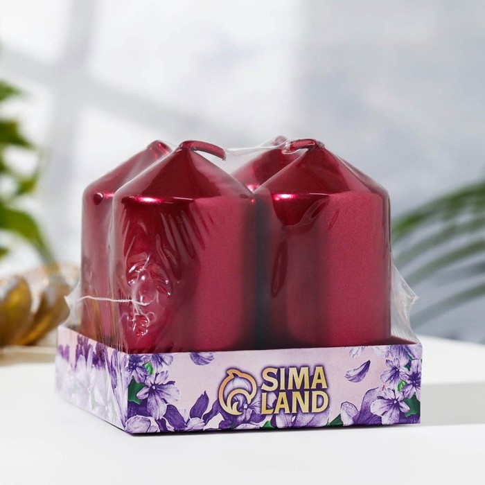 Набор свечей "Столбик", 4 штуки, рубиновый 7х3,8см