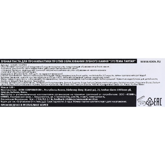 Состав: Фторид натрия, пирофосфат натрия, диоксид кремния стоматологического типа.