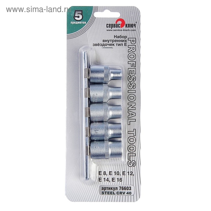 Набор звездочек "СЕРВИС КЛЮЧ", Е8-Е16, 5 пр, 1/2