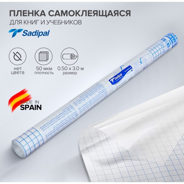 Пленка самоклеящаяся прозрачная бесцветная для книг и учебников, 0.50 х 3.0 м, 50 мкм Sadipal