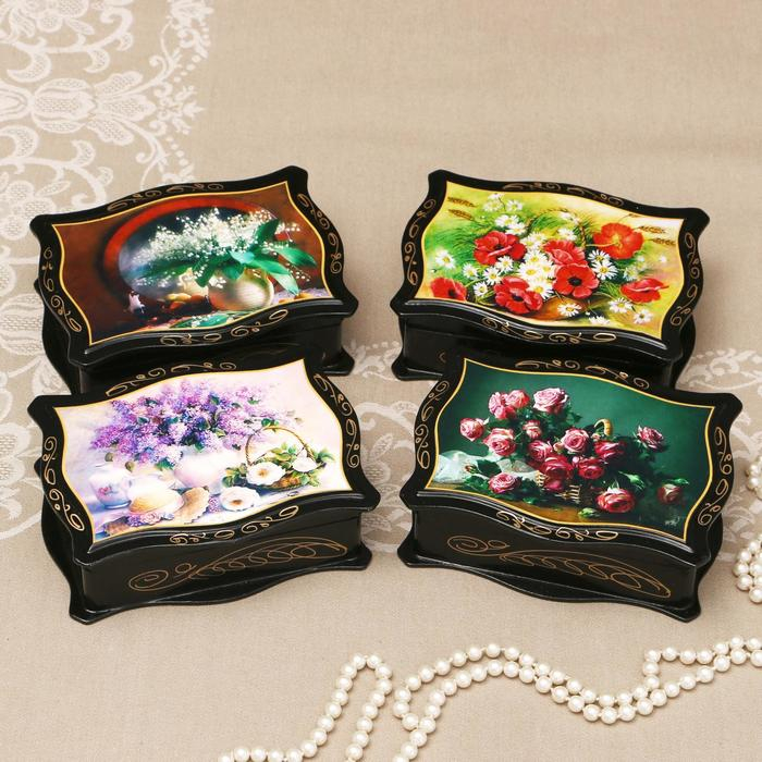 Шкатулка «Цветы», 12×16 см, лаковая миниатюра микс