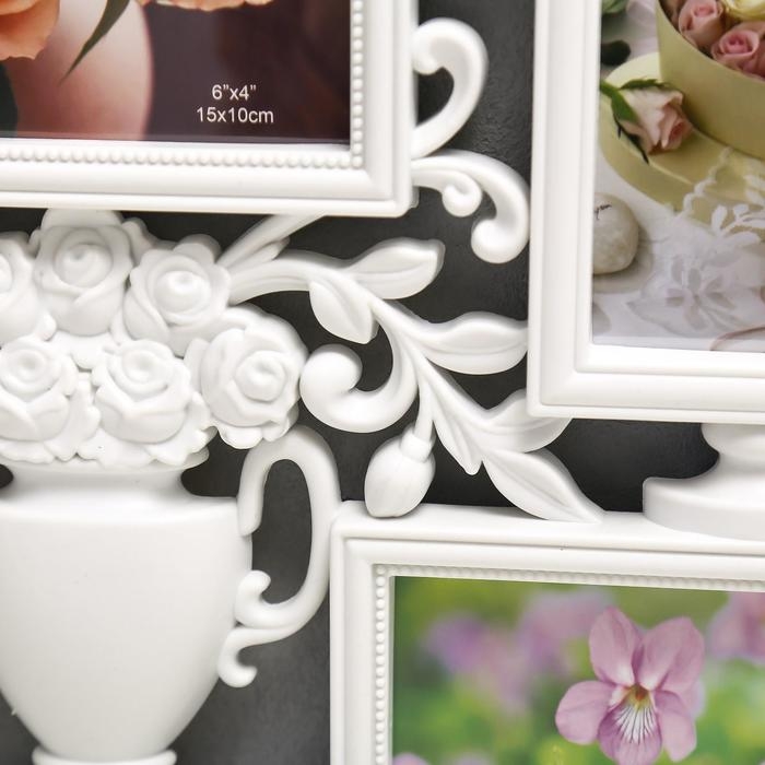 Фоторамка пластик на 5 фото 10х15 см "Ваза с цветами" белая 31х46 см
