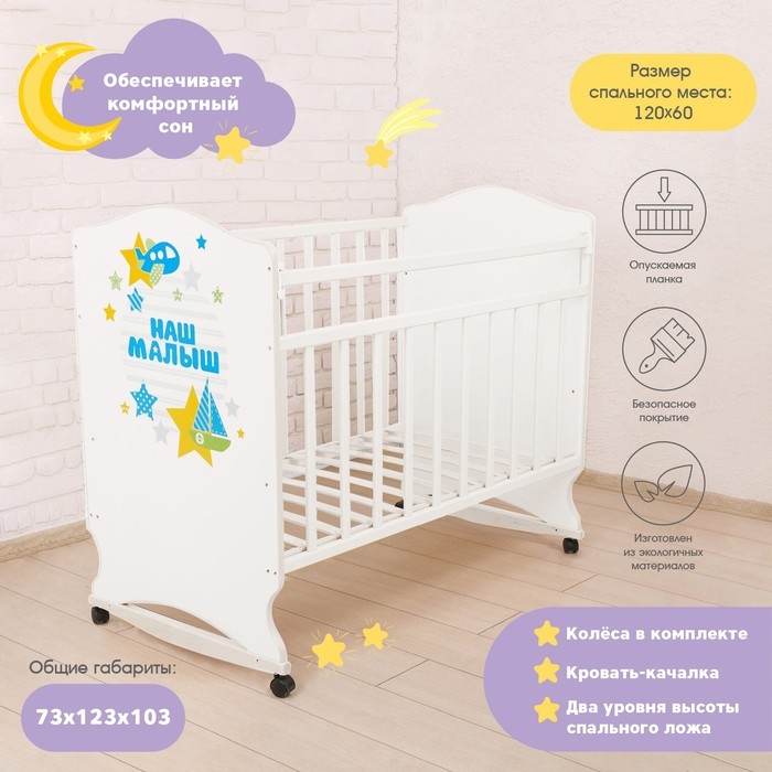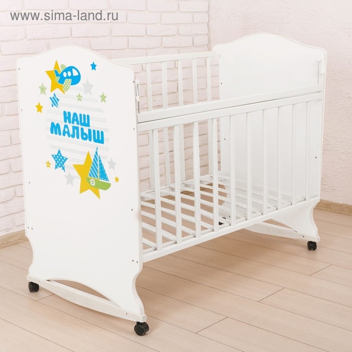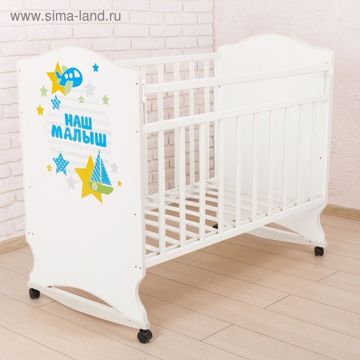 Детская кроватка «Наш малыш» на колёсах или качалке, цвет белый
