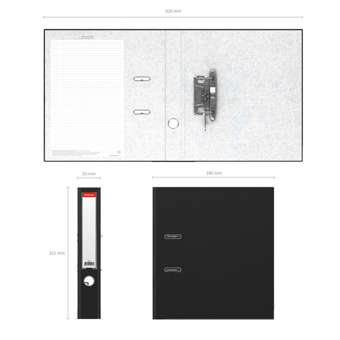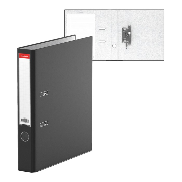 Папка-регистратор А4, 50 мм, ErichKrause "Бизнес", собранный, черный, пластиковый карман, металлический кант, картон 2 мм, вместимость 350 листов