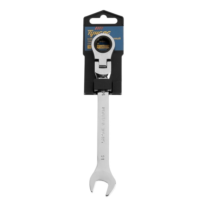 Ключ комбинированный трещоточный шарнирный ТУНДРА, CrV, полированный, 72 зуба, 14 мм