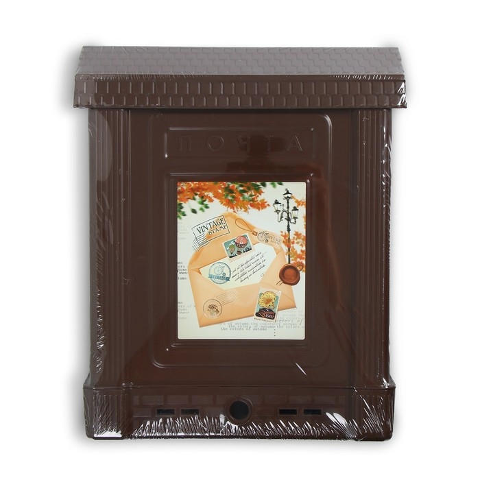 Ящик почтовый, пластиковый, «Декор», с замком, коричневый