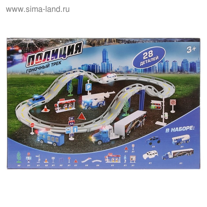 С детским автотреком «Полиция» ребёнок устроит захватывающие гонки на длинной трассе, организует преследование преступника и спасёт город от опасности.