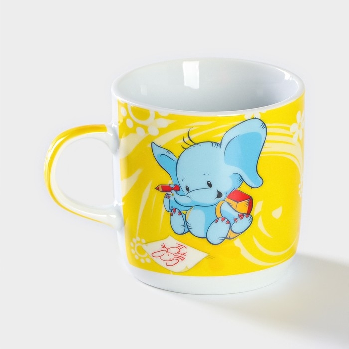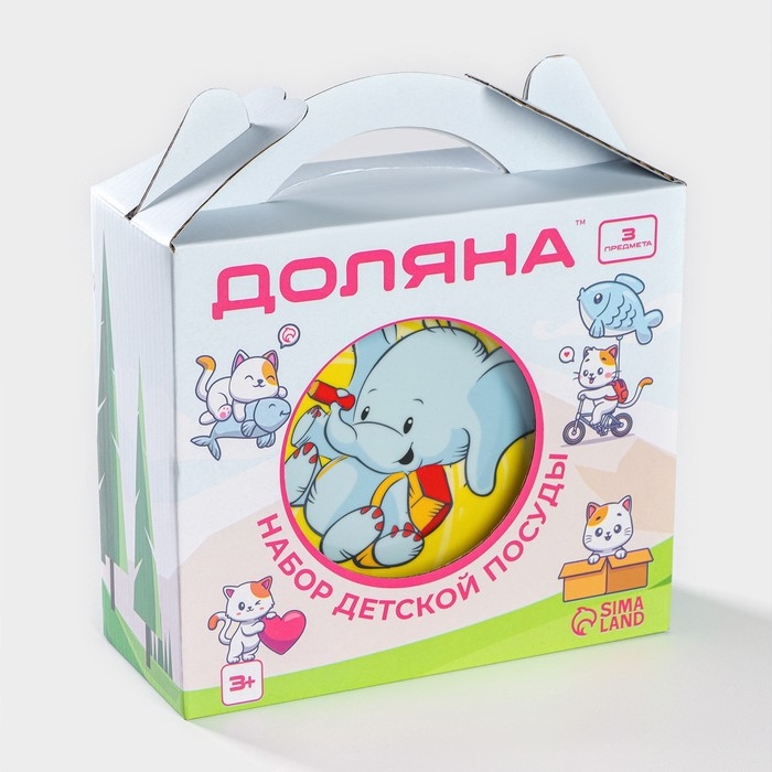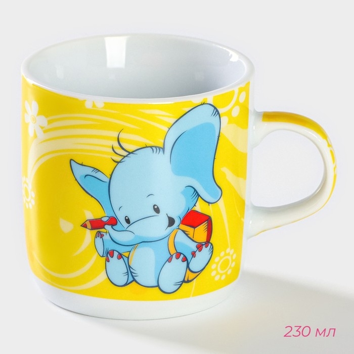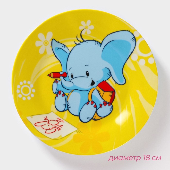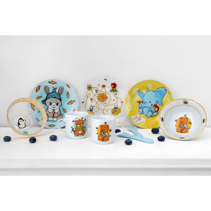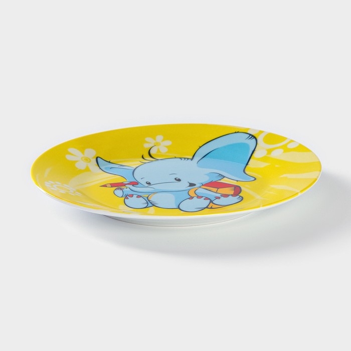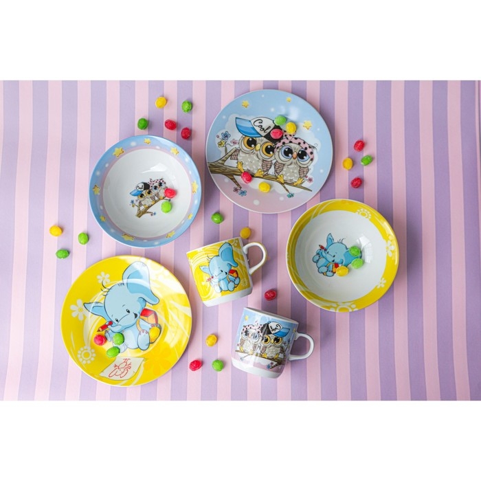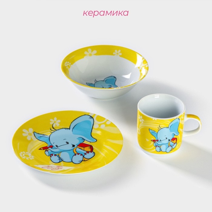 Набор детской посуды из керамики Доляна «Слонёнок», 3 предмета: кружка 230 мл, миска 400 мл, тарелка d=18 см