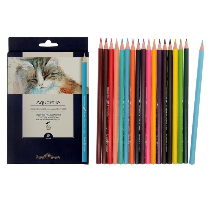 Карандаши акварельные 18 цветов BrunoVisconti Aquarelle, трёхгранные