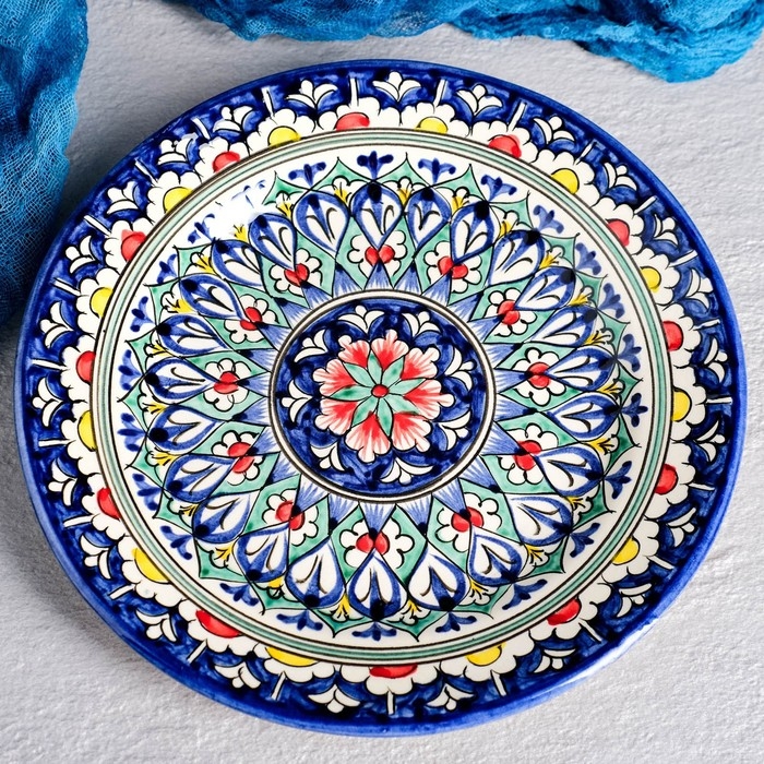 Тарелка Риштанская Керамика "Узоры", синяя, глубокая, микс, 20 см