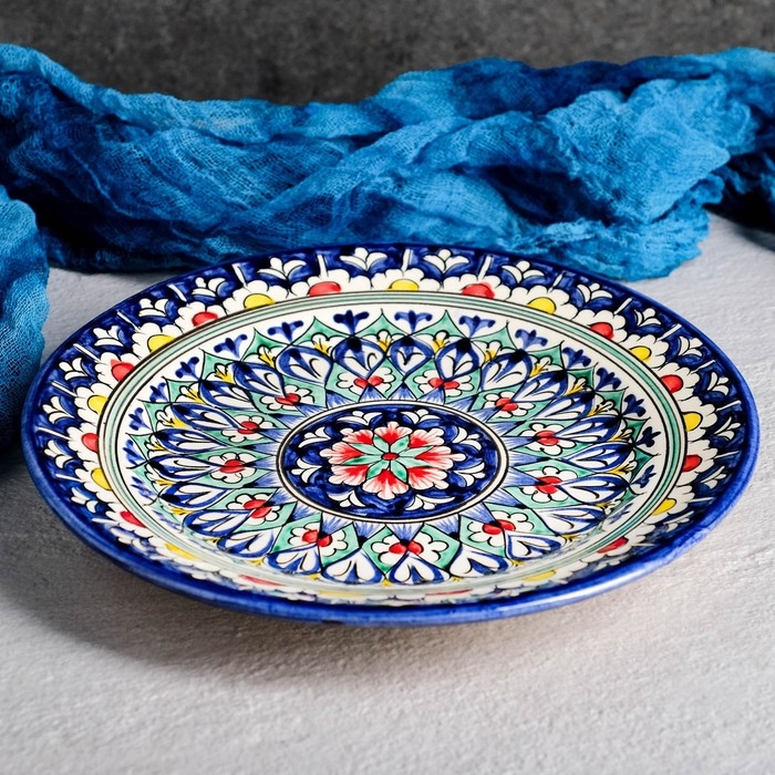 Тарелка Риштанская Керамика "Цветы", 22 см, синяя
