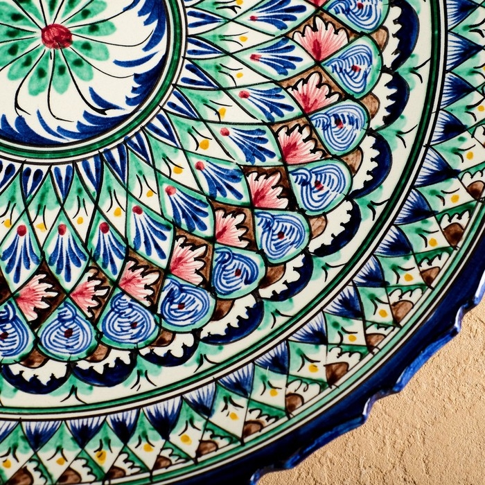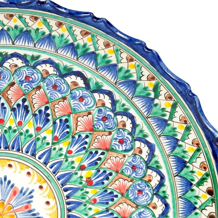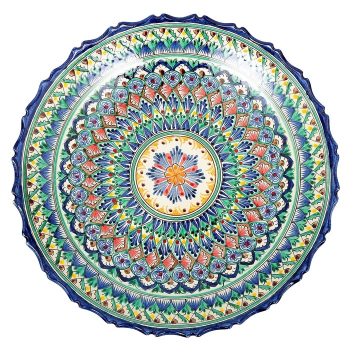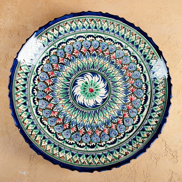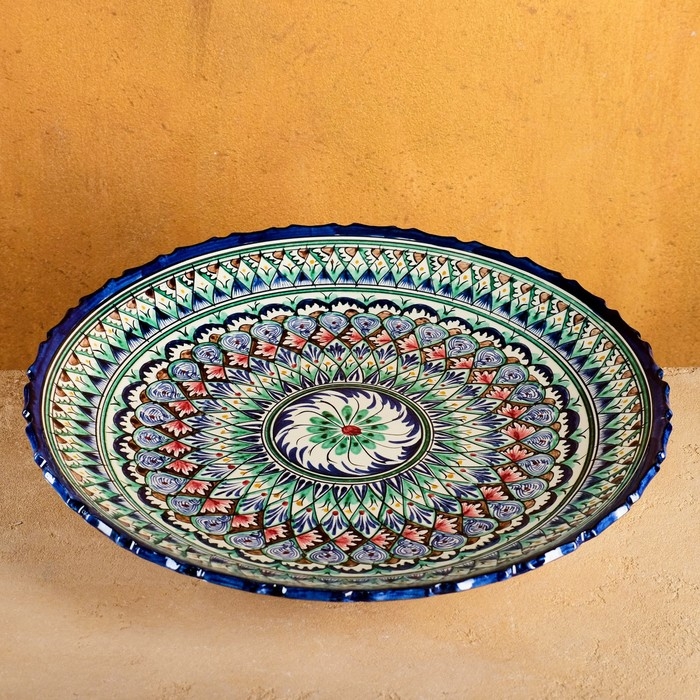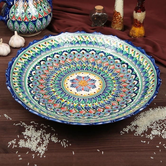 Ляган Риштанская Керамика "Узоры", 42 см, синий, рифлённый
