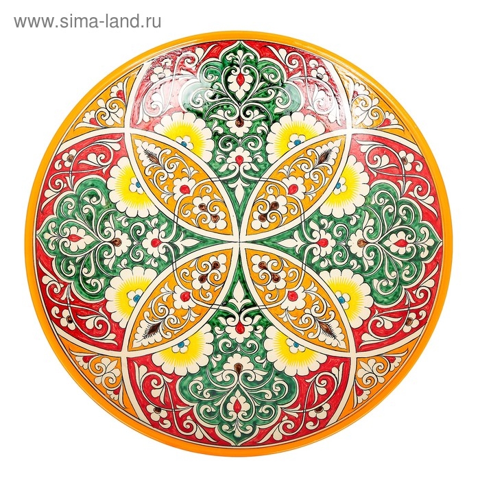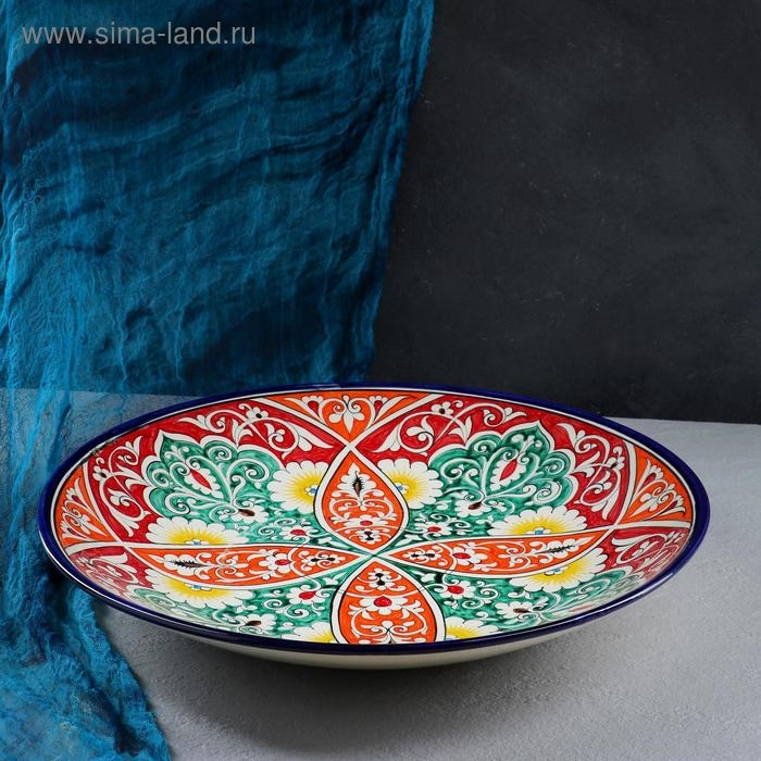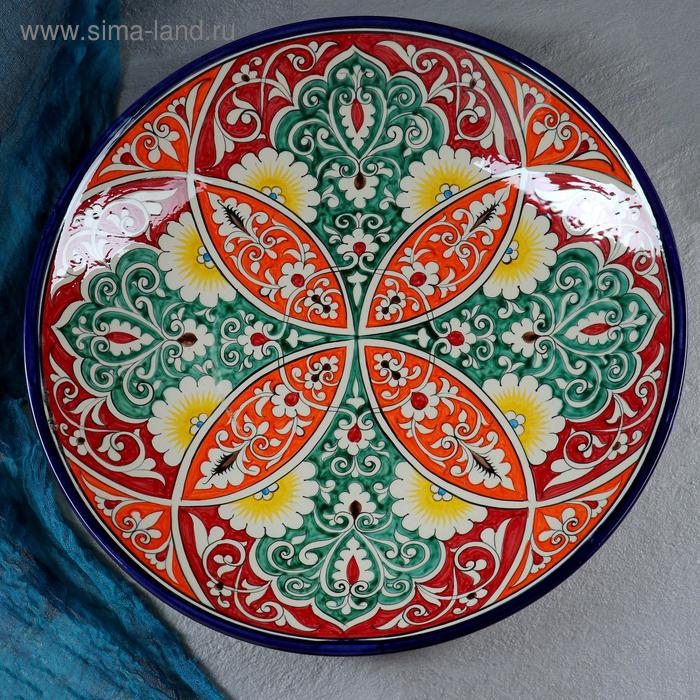 Ляган Риштанская Керамика "Узоры", 42 см, оранжевый