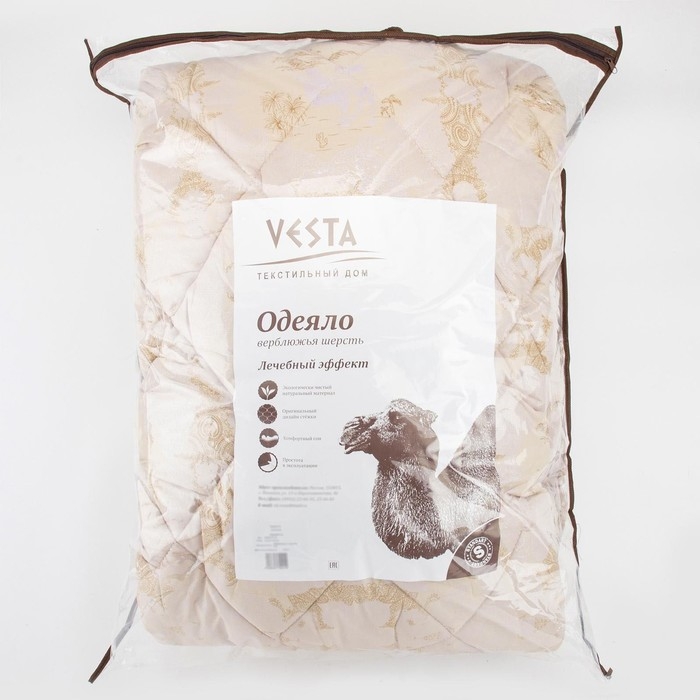 Одеяло облегчённое Адамас "Верблюжья шерсть", размер 140х205 ± 5 см, 200гр/м2, чехол п/э