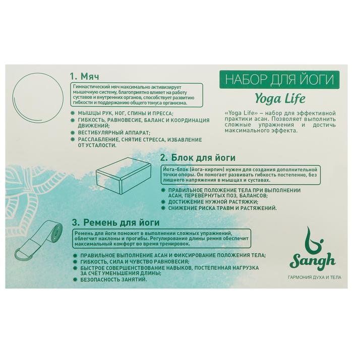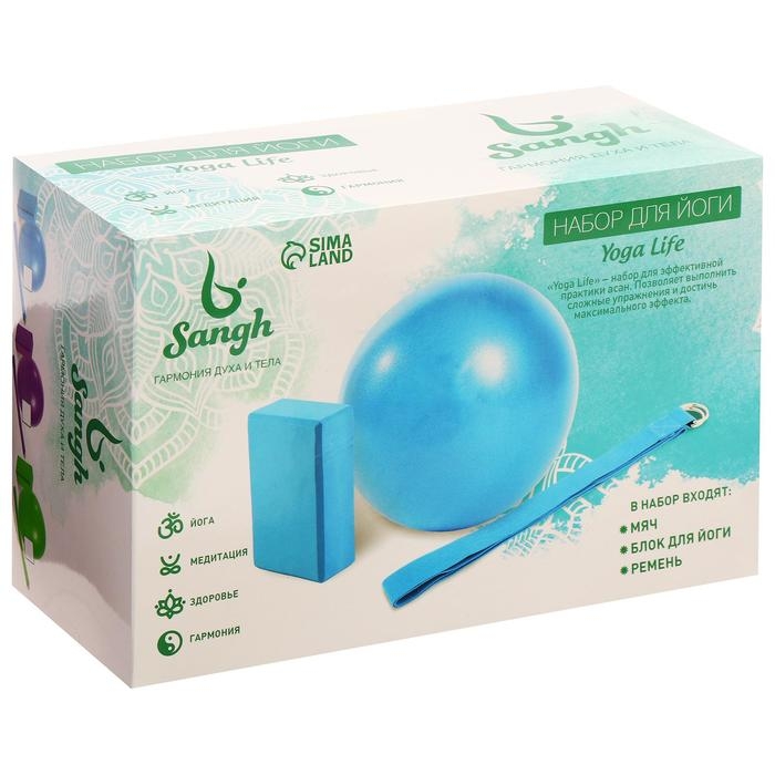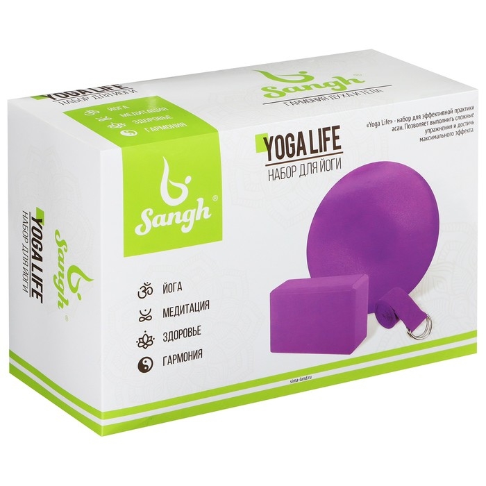 Набор для йоги Sangh: блок, ремень, мяч, цвет фиолетовый