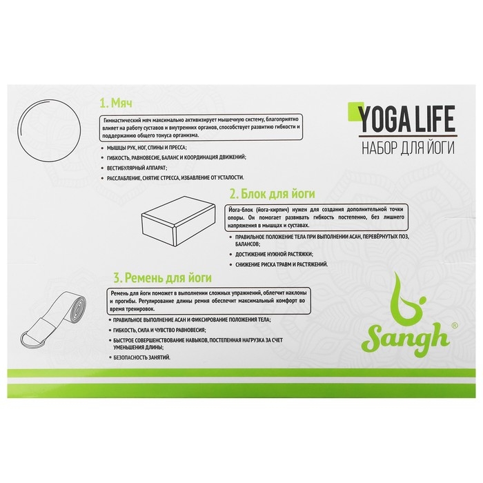 Набор для йоги Sangh: блок, ремень, цвет чёрный