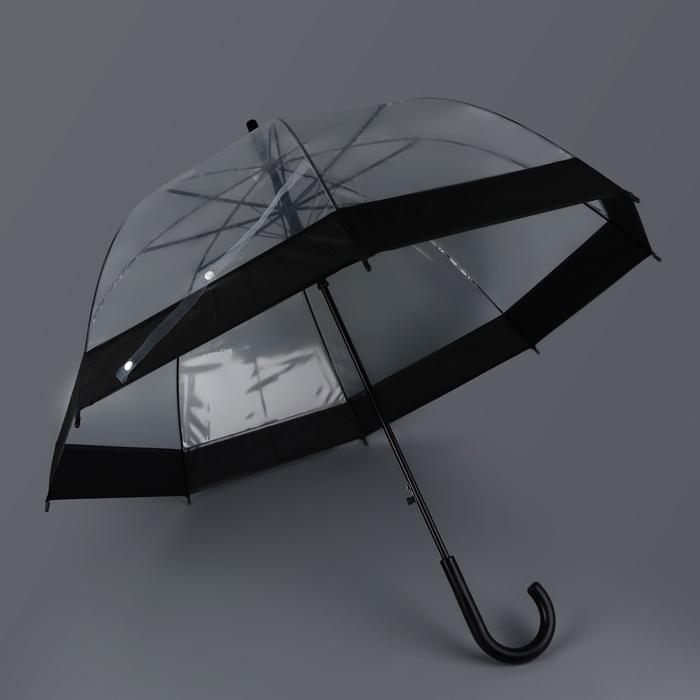 Зонт - трость полуавтоматический «Кант», 8 спиц, R = 43/60 см, D = 120 см, цвет чёрный/прозрачный