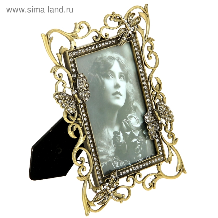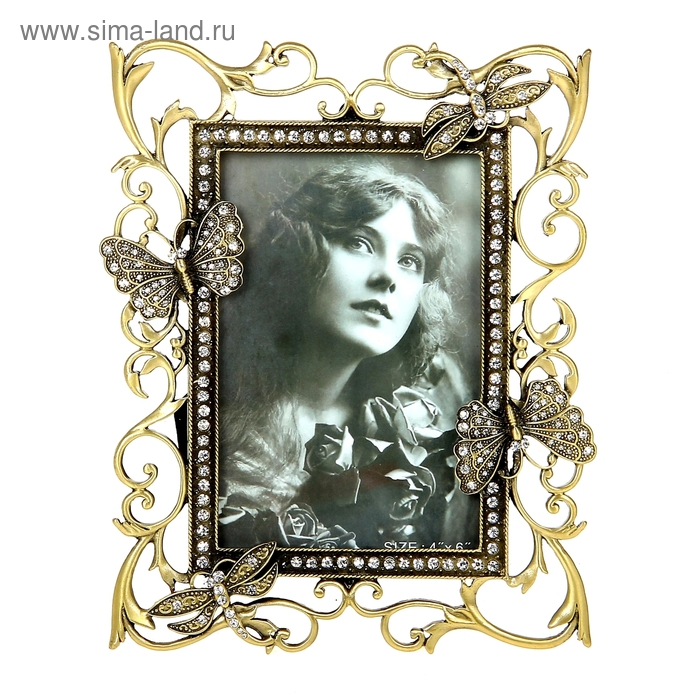 Фоторамка металл "Бабочки и стрекозы" стразы 10х15 см