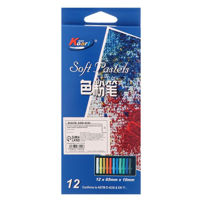 Пастель художественная, профессиональная сухая, 12 цветов в картонной коробке