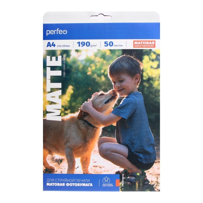 Фотобумага для струйной печати А4, 50 листов Perfeo, 190 г/м2, односторонняя, матовая