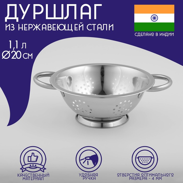 Дуршлаг из нержавеющей стали Доляна «Индия», 1,1 л, d=20 см, на ножке, две ручки