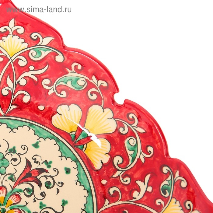 Фруктовница Риштанская Керамика "Цветы", 33 см, квадратная, красная
