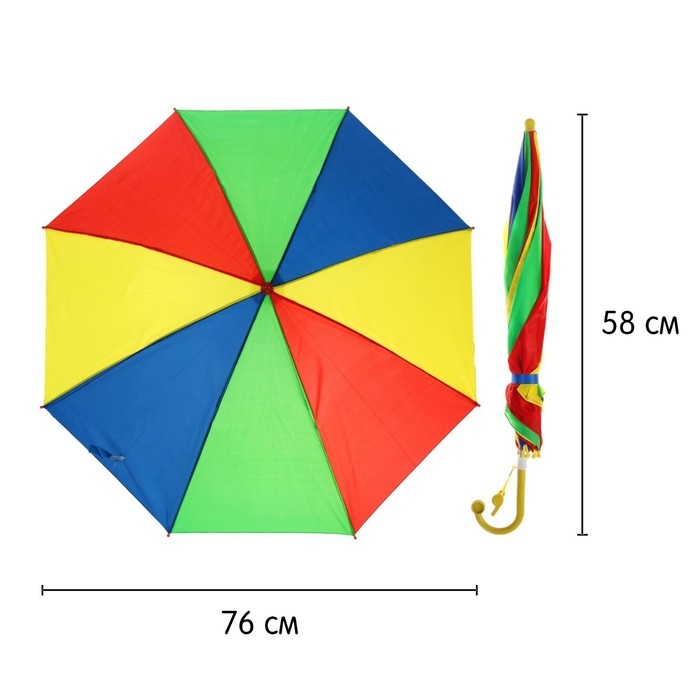 Зонт-трость «Радуга», полуавтоматический, со свистком, R=38см, цвета МИКС