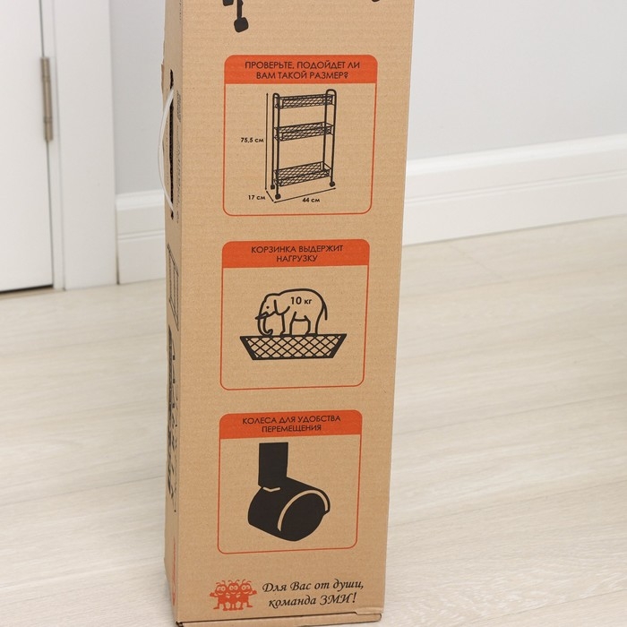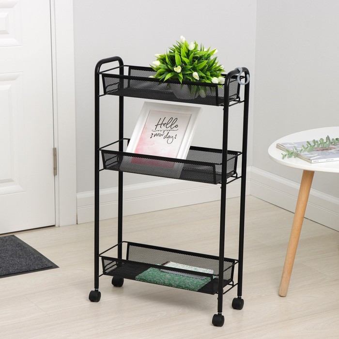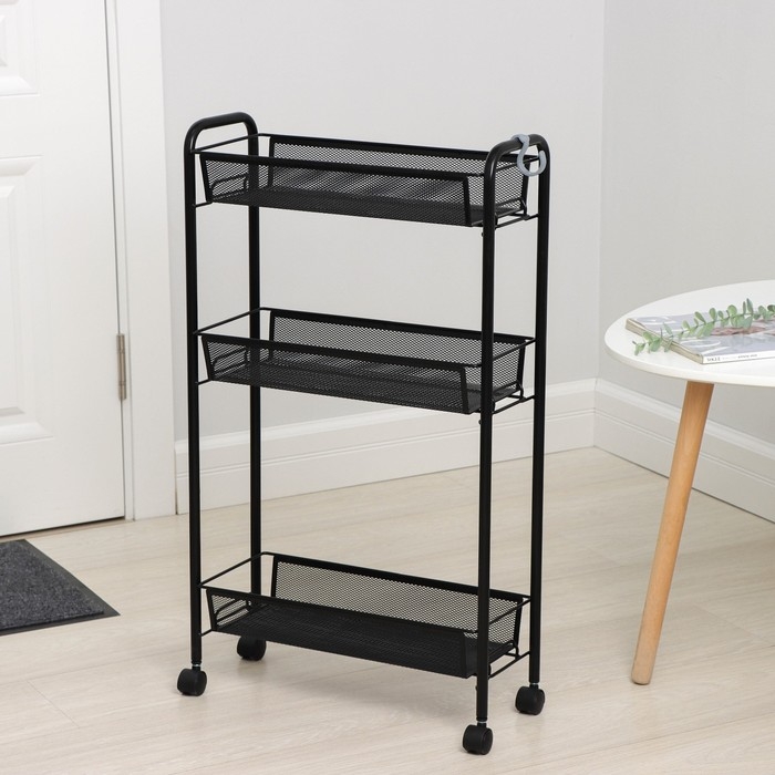 Этажерка на колёсиках «Ладья 1К», 3 яруса, 44×17×75,5 см, цвет чёрный