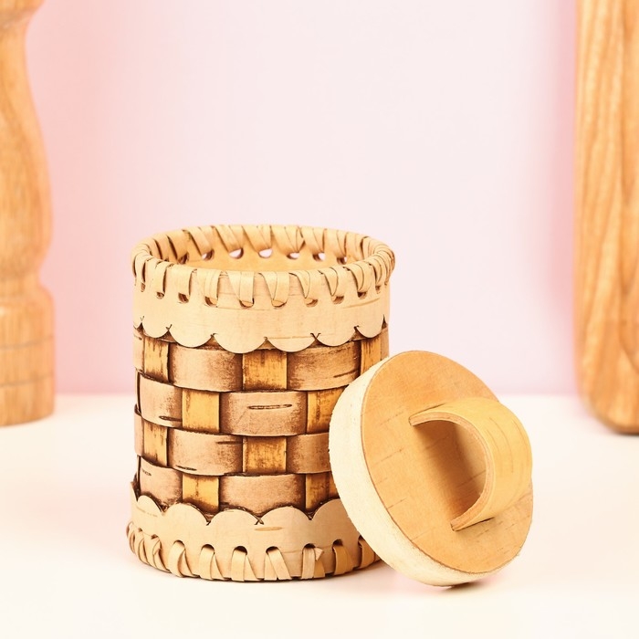 Туес «Велюр», плетеный, 6х6х9 см, береста