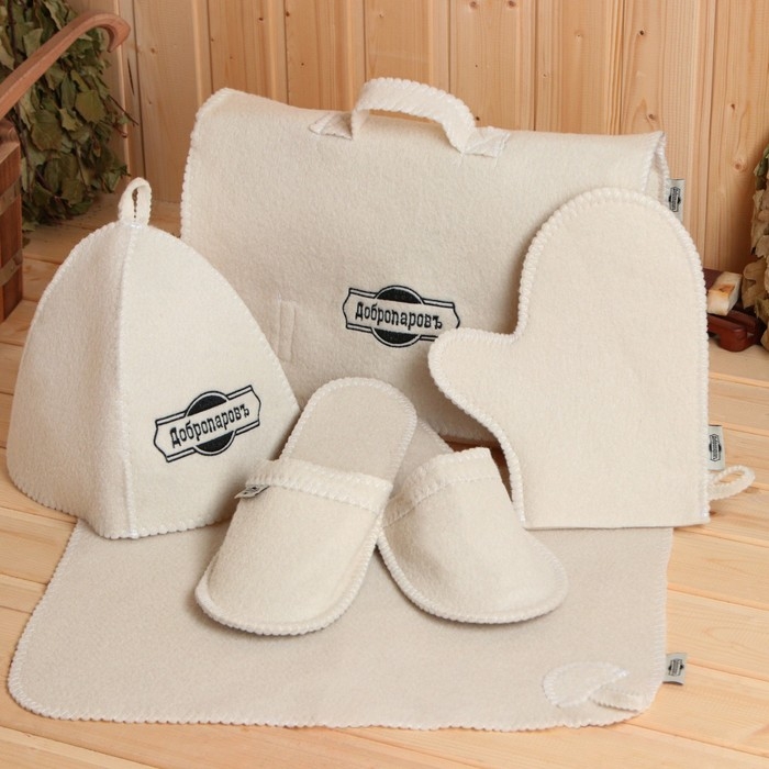 Для комфортного отдыха в парной возьмите с собой набор банных принадлежностей. Предметы из этого комплекта предохраняют тело от перегрева и являются средствами индивидуального пользования. Влажные изделия рекомендуется сушить в расправленном виде на горизонтальной поверхности. Принадлежности из войлока и фетра стирайте вручную при температуре воды 30 °C.
