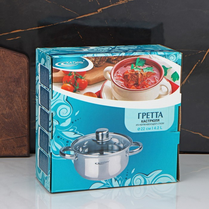 Кастрюля «Гретта», 4.2 л, d=22 см, капсульное дно, индукция