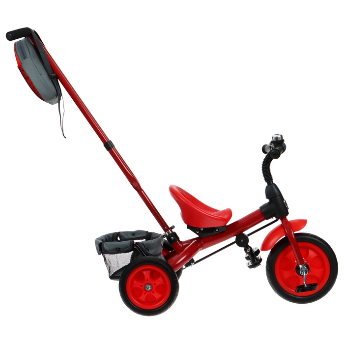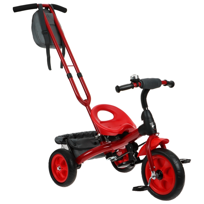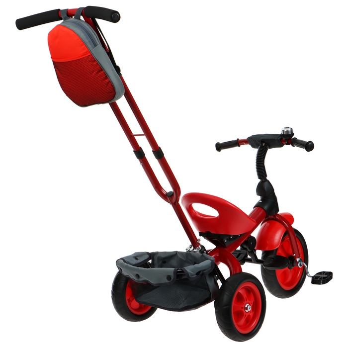Стальная рама обеспечивает прочность транспортного средства. В задней корзине можно возить маленькие игрушки, а в сумке на руле — личные вещи. Также данная модель оснащена звонком.