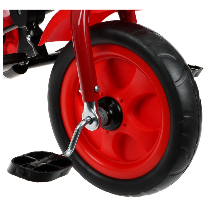 Трёхколёсный велосипед «Лучик Vivat 3» имеет родительскую ручку, которая позволяет управлять передним колесом. С помощью неё вы можете контролировать транспортное средство, пока ребёнок отдыхает. Чтобы ноги малыша не волочились по земле, под сиденьем установлена складная подножка.