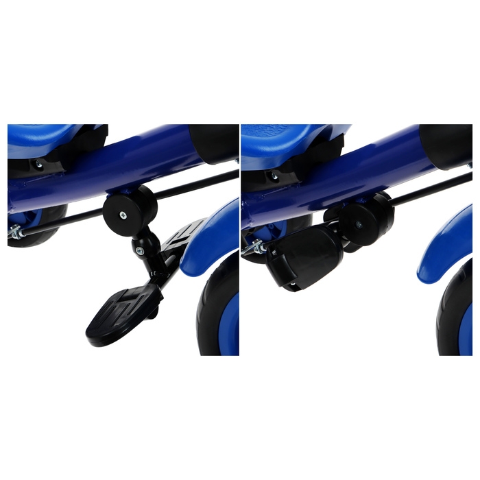 Трёхколёсный велосипед «Лучик Vivat 3» имеет родительскую ручку, которая позволяет управлять передним колесом. С помощью неё вы можете контролировать транспортное средство, пока ребёнок отдыхает. Чтобы ноги малыша не волочились по земле, под сиденьем установлена складная подножка.