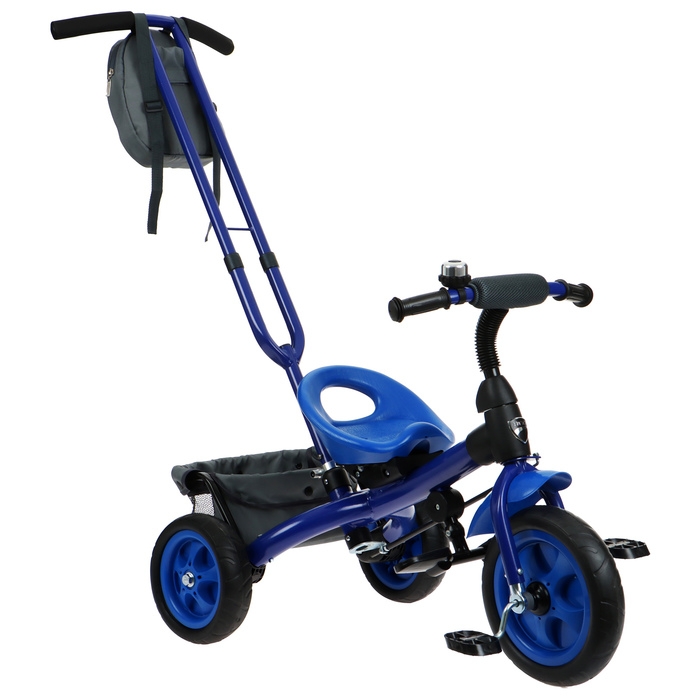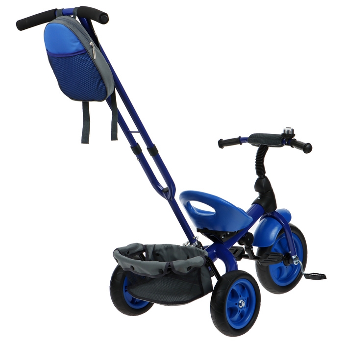 Стальная рама обеспечивает прочность транспортного средства. В задней корзине можно возить маленькие игрушки, а в сумке на руле — личные вещи. Также данная модель оснащена звонком.