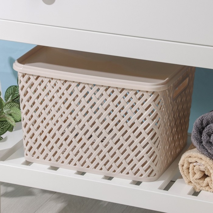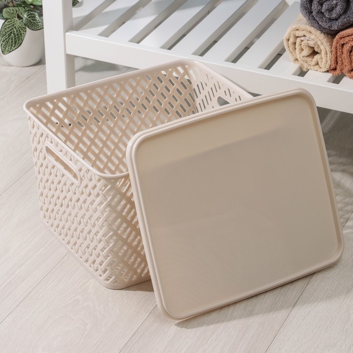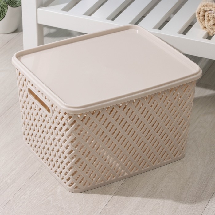 Корзина для хранения с крышкой «Плетёнка», 35×29×22,5 см, цвет бежевый