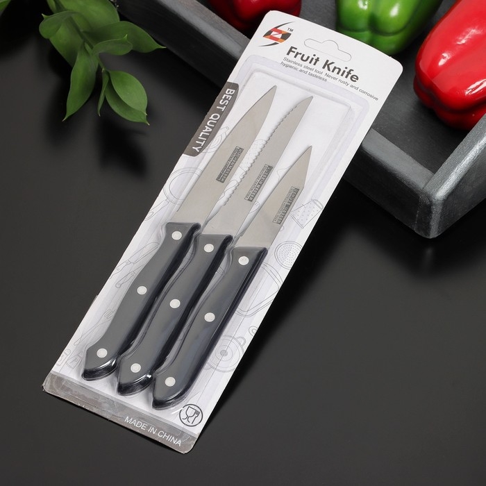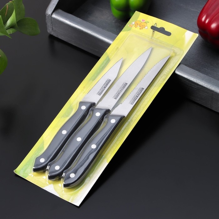 Набор кухонных ножей Доляна «Кулинарные изыски», 3 шт, лезвие 8 см, 11 см, 11 см, цвет чёрный