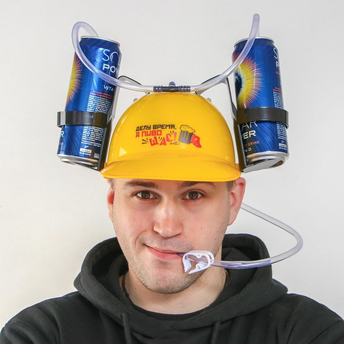 Каска «Делу время, а пиво щас», с отверстиями под банки, обхват головы 56-58 см