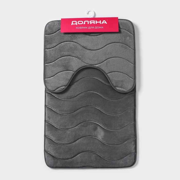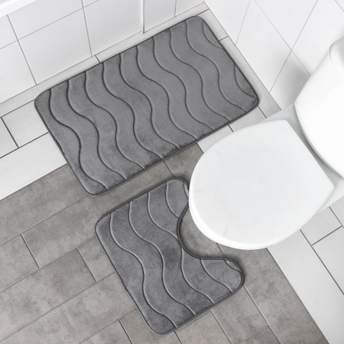 Набор ковриков для ванной и туалета Доляна «Волна», 2 шт, 40×50 см, 50×80 см, цвет серый