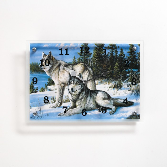 Часы-картина настенные, интерьерные "Волки в Зимнем Лесу", бесшумные, 25 х 35 см