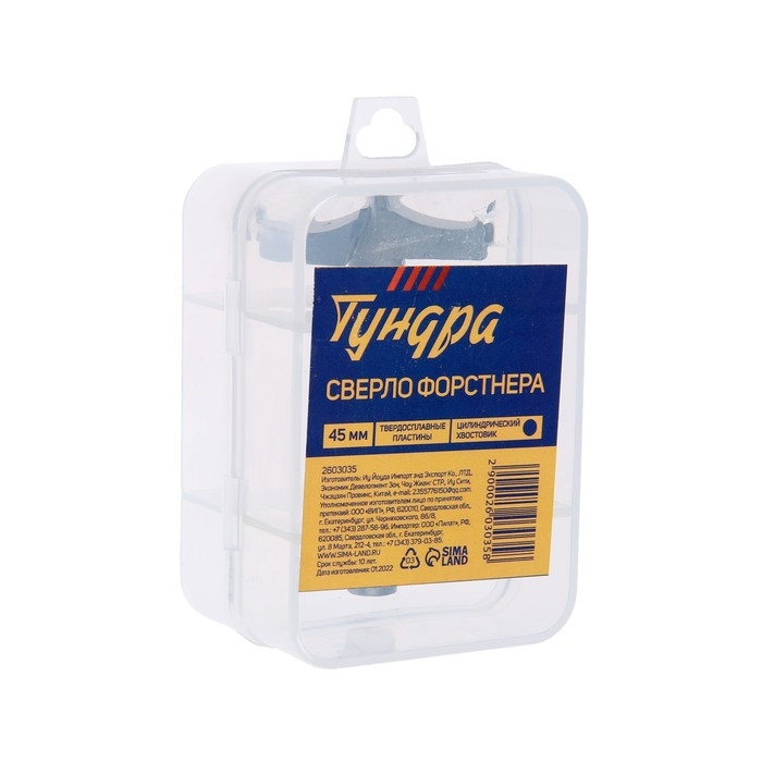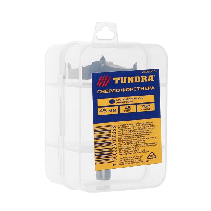 Сверло Форстнера ТУНДРА, твердосплавные пластины, цилиндрический хвостовик, 45 мм