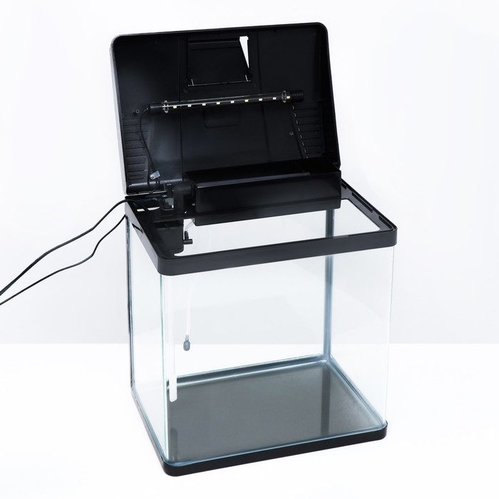 Аквариум "Прямоугольный" с крышкой, 5 литров, 25 x 13 x 15,5/18 см, чёрный