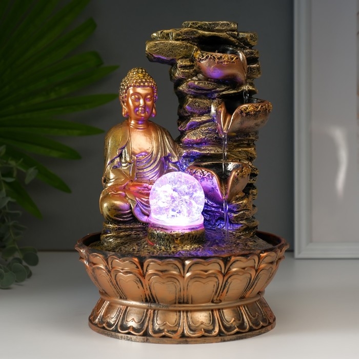 Фонтан настольный полистоун 220В "Будда у скалы с чашами" 30х21х21 см