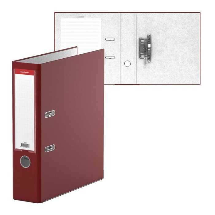 Папка-регистратор А4, 70 мм, ErichKrause "Бизнес", собранный, бордовый, пластиковый карман, металлический кант, картон 2мм, вместимость 450 листов
