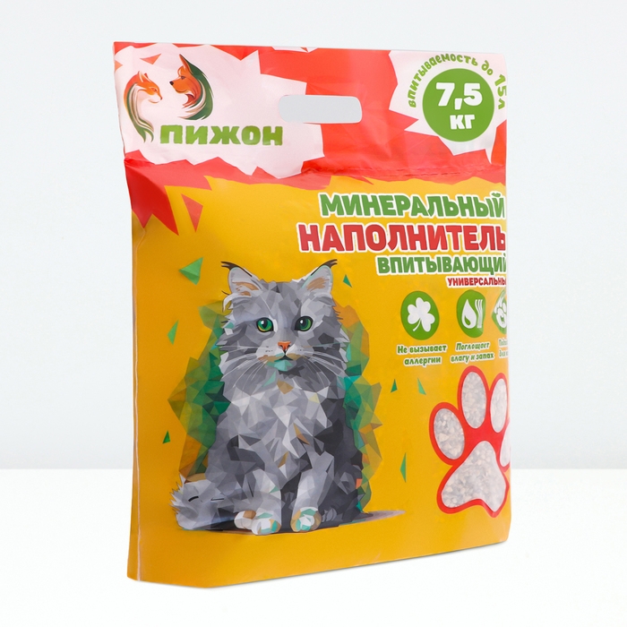 Наполнитель минеральный впитывающий "Пижон" - это ** природный сорбент (опока)**, полученный без какой-либо химической обработки. Гранулы подходят для большинства кошек.