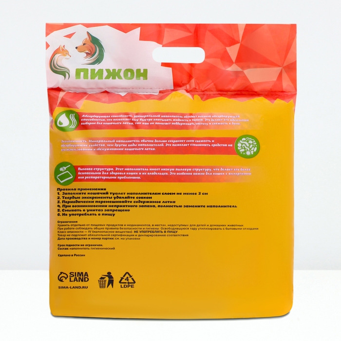 Наполнитель минеральный впитывающий "Пижон" для короткошерстных кошек, 5 л
