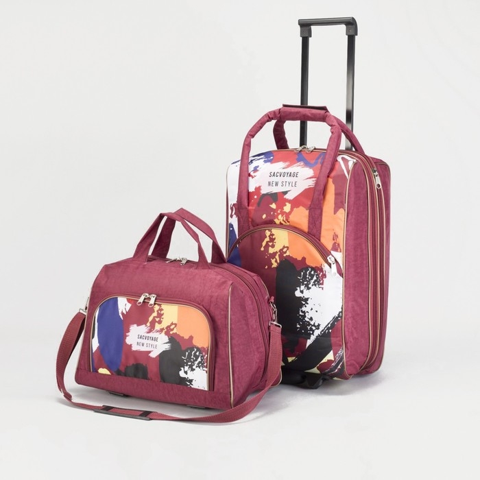 Чемодан малый 20" с сумкой, отдел на молнии, наружный карман, с расширением, цвет бордовый