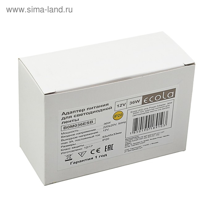 Блок питания Ecola для светодиодной ленты 12 В, 36 Вт, IP20