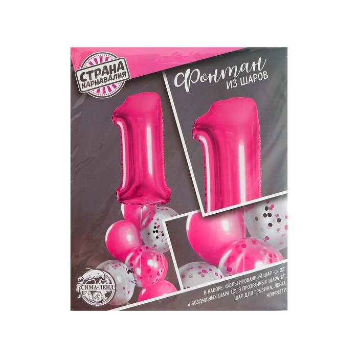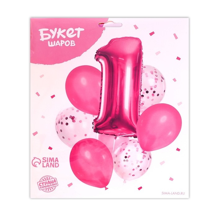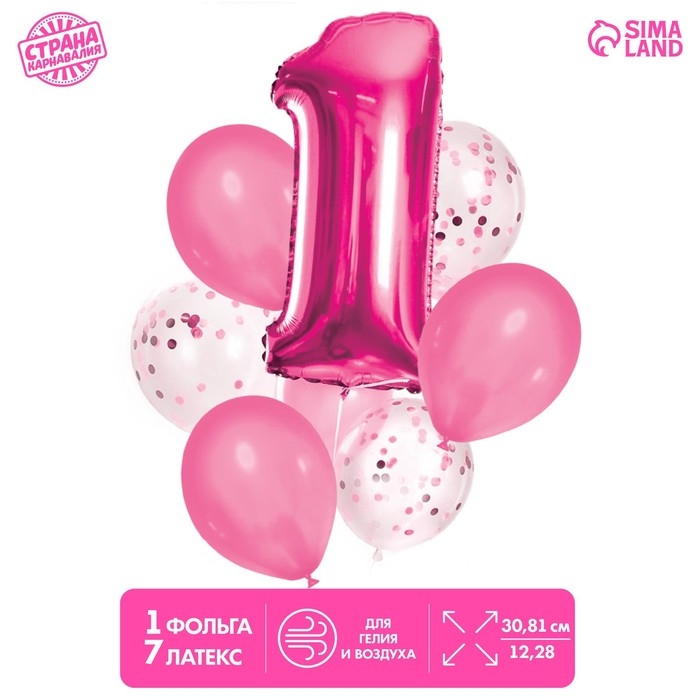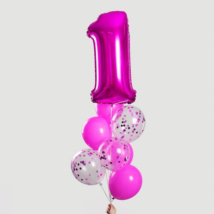 Набор воздушных шаров «1 годик», для девочки, с конфетти, фольга, латекс, 8 шт.