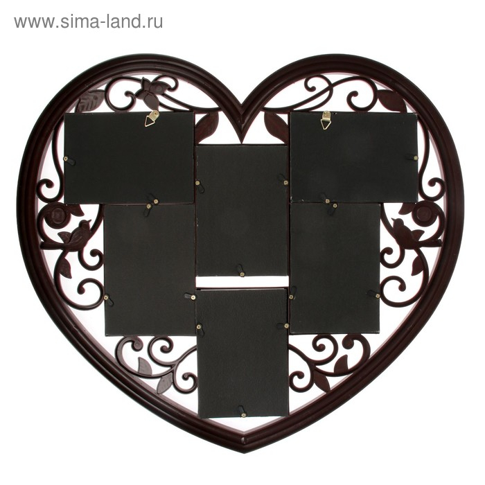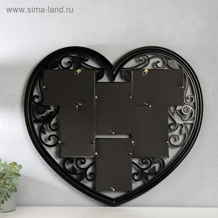 Фоторамка пластик на 6 фото 10х15 см "Сердце ажурное" черная 56х51 см
